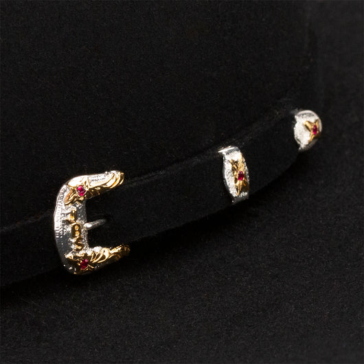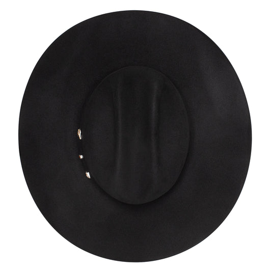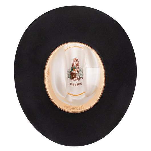 This Stetson 30X El Patron fur felt hat is among Stetson's most popular hats. The body is made of beaver's fur and the hat band comes with a sterling silver buckle and gold colored overlays and inset stone. The sweat band is made of leather and can be personalized with the owners name printed inside. For a hat like, just like the 30X El Patron, it's best to order your preferred color, crown and brim. We will print a name or phrase of your choice on the sweat band at a low price of $25 for most .