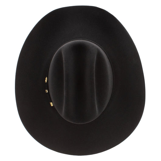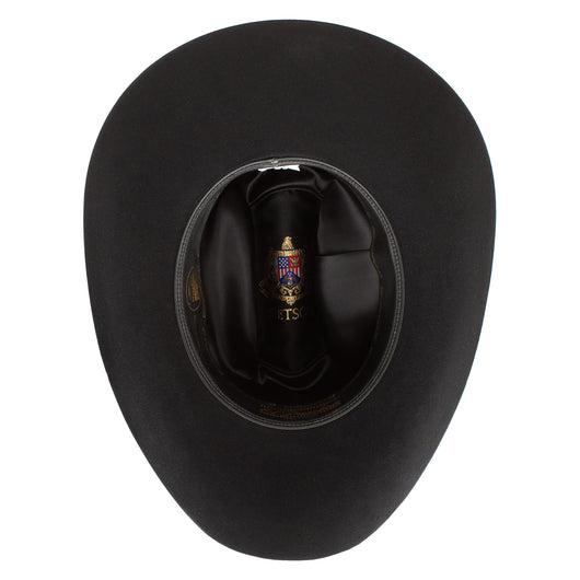 Este sombrero Stetson 100X El Presidente de piel de castor es uno de los más populares de Stetson. El cuerpo está confeccionado en piel de castor y la cinta interior cuenta con una hebilla de oro de 10 quilates. La badana es de cuero y se puede personalizar con el nombre del propietario grabado en su interior. Para un sombrero como este, lo ideal es pedir el color, la copa y el ala que prefiera. Un sombrero de estas características requiere protección, por lo que se entrega con una funda rígida de plástico. Grabaremos el nombre o la frase que elija en la badana sin coste adicional.